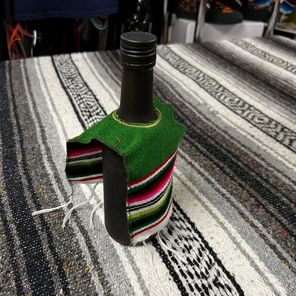 Green serape poncho for bottle