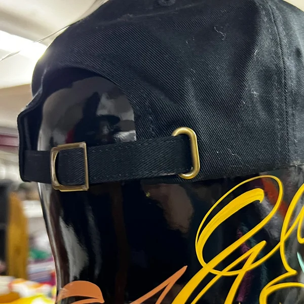 Must "dad hat" nokamüts, kollasega tikitud logo.